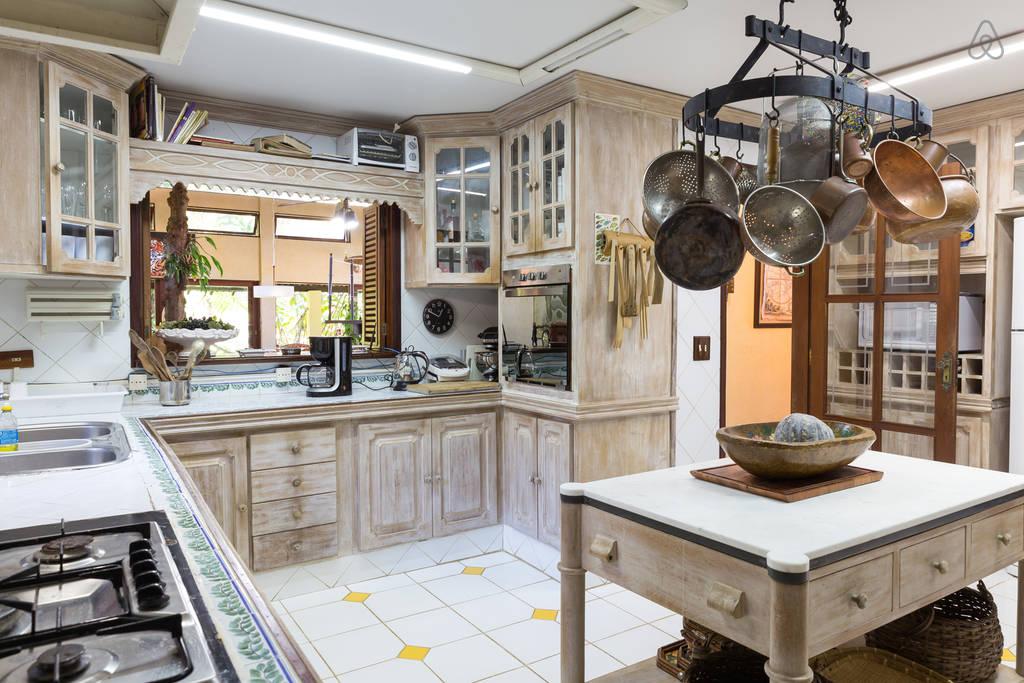 Además cuenta con un amplio comedor, un bar y una cocina completa con todos los electrodomésticos, dos hornos, congelador y freezer. Baño de servicio, cuarto de despensa y lavadero.